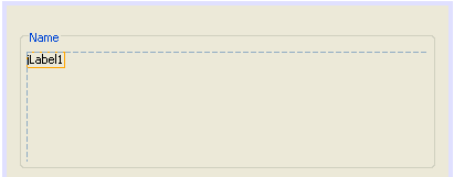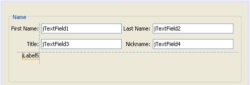 Move the cursor over the Name JPanel we added earlier. When the guidelines appear indicating that the JLabel is positioned in the top left corner of the JPanel with a small margin at the top and left edges, click to place the label.