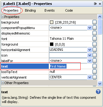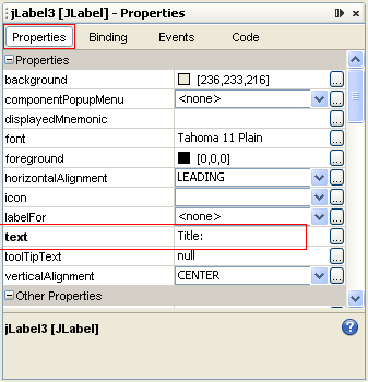 Before going further, we need to edit the display text of the JLabel we just added. Though you can edit component display text at any point, the easiest way is to do this as you add them.