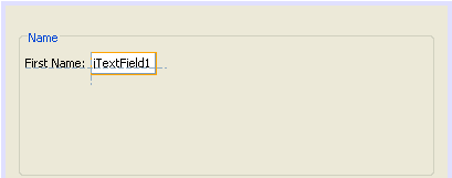 Move the cursor immediately to the right of the First Name: JLabel we just added. When the horizontal guideline appears indicating that the JTextField's baseline is aligned with that of the JLabel and the spacing between the two components is suggested with a vertical guideline, click to position the JTextField.