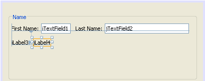 Before proceeding further, we need to add an additional JLabel and JTextField immediately to the right of those we just added, as shown in the following illustration. This time enter Last Name: as the JLabel's display text and leave the JTextFields' placeholder text as it is for now.