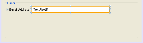 Select the JLabel and then edit the text field in the Properties sheet or clicking the JLabel once, pausing, and then clicking the JLabel again. Type E-mail Address: and press Enter.