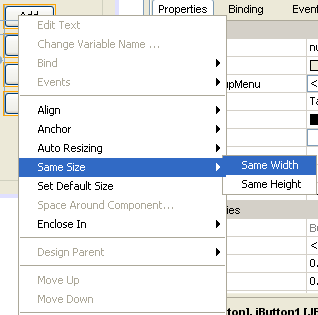 Now that the buttons are positioned where we want them, we'll set the four buttons to be the same size for visual consistency as well as to clarify that they are related functionally. To set components to the same size: