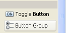 In the Palette window, select the ButtonGroup component from the Swing category.